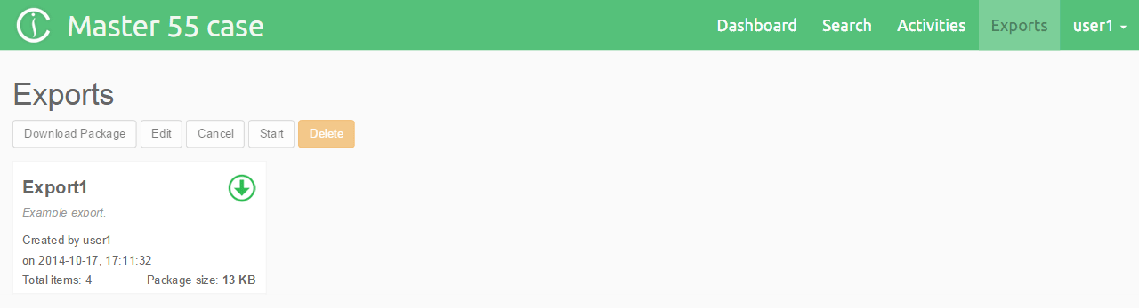 Note: An export package can also be downloaded by clicking on the download button
