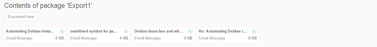 Individual items can be downloaded from the export package by selecting the item and then clicking on Download Item button.