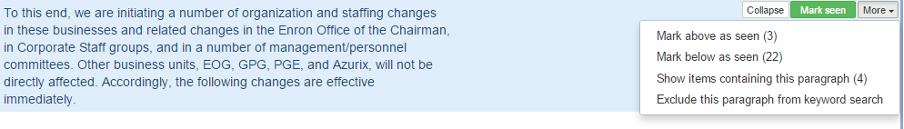 When the “Analyze paragraphs” option was selected during source creation, extra UI elements will be shown in the right margin. These UI elements indicate the start and end of the paragraphs that Intella has detected. The UI elements are omitted for very short paragraphs (typically one-liners).